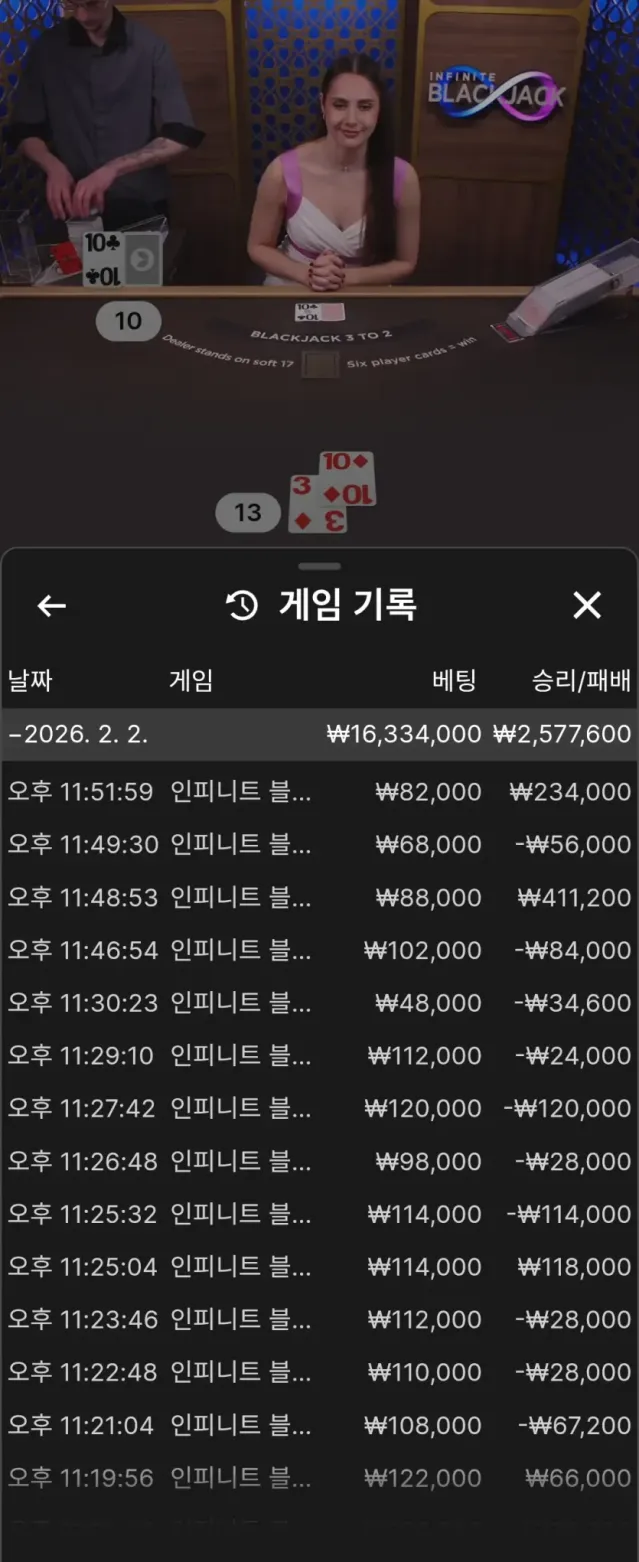 이틀연속 이렇게 먹기는 첨이네요 작성자 정보 스컬트라 작성 작성일 2026.02.03 20:17 컨텐츠 정보 316 조회 1 댓글 목록 본문 어제는 멀린형님이 15000배이상 주더니오는은 블랙젝으로 10만출 300까지 올렸다가 2200000마감하네요 ㄷㄷ 관련자료 댓글 1 혁진공님의 댓글 혁진공 작성일 2026.02.03 20:18 부럽네요 부럽네요 로그인한 회원만 댓글 등록이 가능합니다. 목록