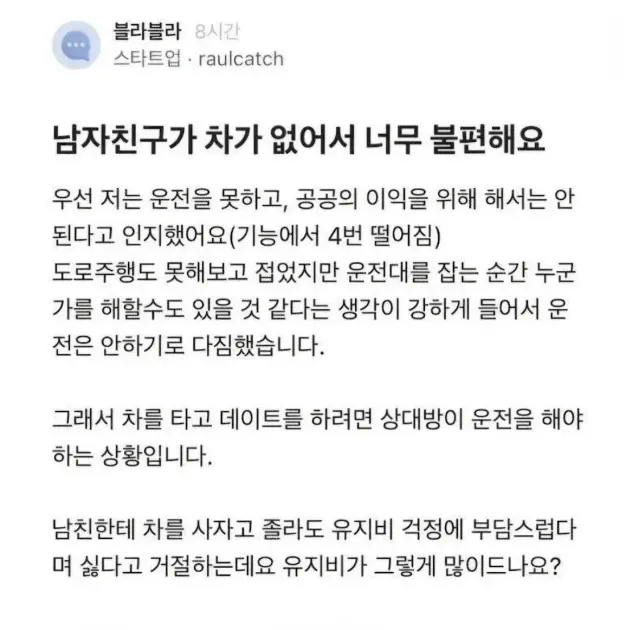 남친이 차가 없어서 너무 불편해요...jpg 작성자 정보 혁쓰혁쓰민 작성 작성일 2026.01.23 10:33 컨텐츠 정보 355 조회 1 댓글 목록 본문 ㄷㄷㄷㄷ 관련자료 댓글 1 손석규님의 댓글 손석규 작성일 2026.01.23 10:35 변화구 지린다 진짜 공익을 위해 차를 안타시는거네요 변화구 지린다 진짜 공익을 위해 차를 안타시는거네요 로그인한 회원만 댓글 등록이 가능합니다. 목록