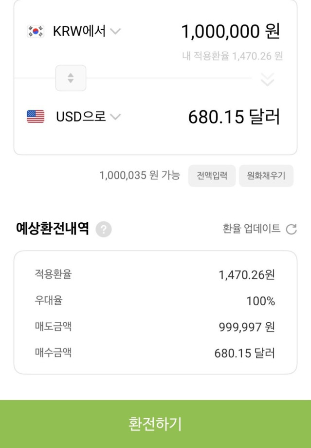 100만원 달러 환전 환산 작성자 정보 계양구미남 작성 작성일 2026.01.16 00:21 컨텐츠 정보 231 조회 1 댓글 목록 본문 680달러 주네요 관련자료 댓글 1 오성탈출님의 댓글 오성탈출 작성일 2026.01.16 00:22 ㅇㅎ ㅇㅎ 로그인한 회원만 댓글 등록이 가능합니다. 목록