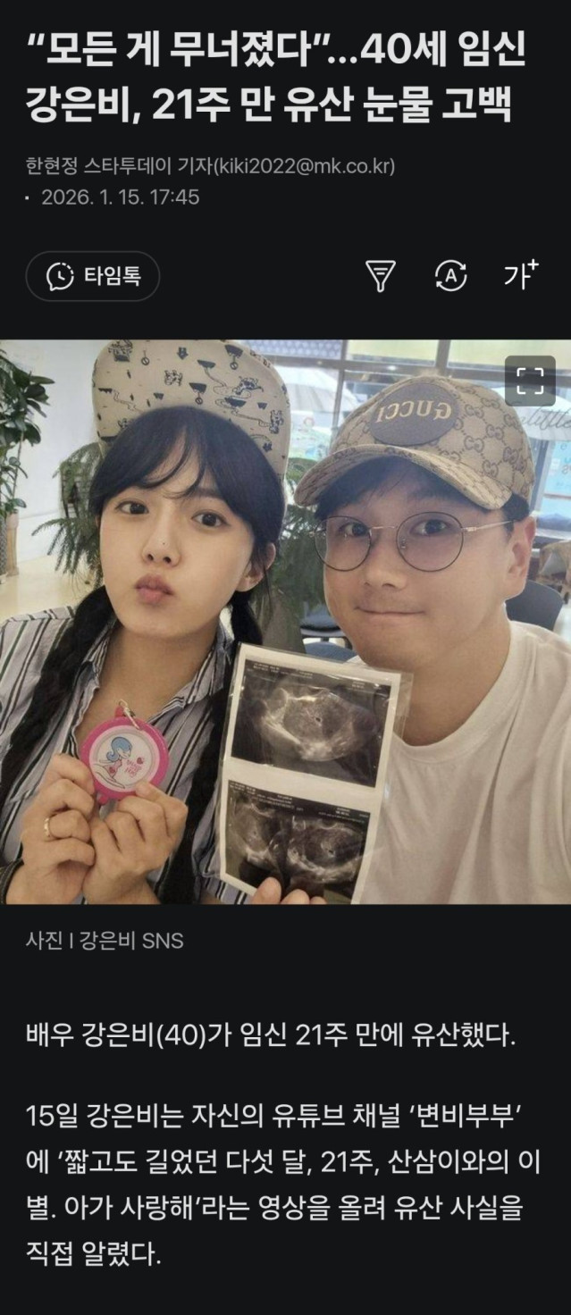 “모든 게 무너졌다”…40세 임신 강은비, 21주 만 유산 눈물 고백...jpg