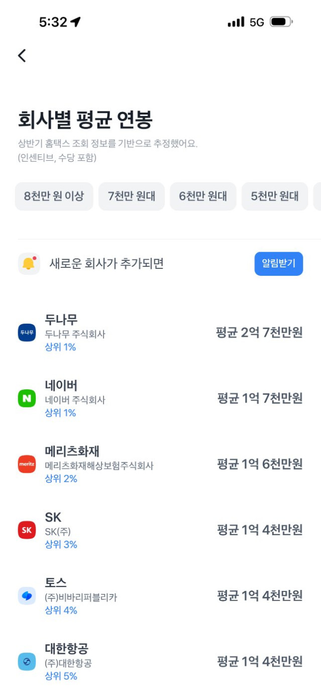 두나무 평균연봉 대박이네요 ㄷㄷㄷ