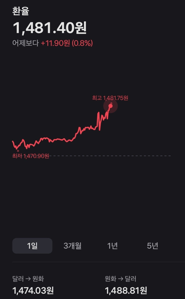 속보] 환율 1480원돌파 ㄷㄷ
