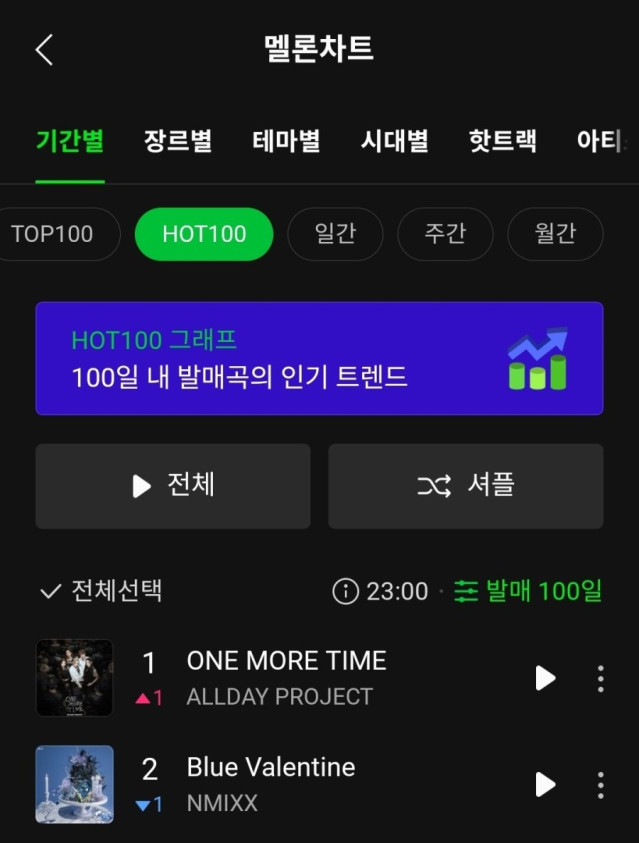 올데이프로젝트 멜론 핫백 1위 ㄷㄷㄷ