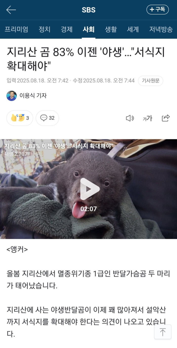 북한산 관악산에도 방사해서 서울 사람들도 반달 가슴 곰 볼수 있게 해줘야죠