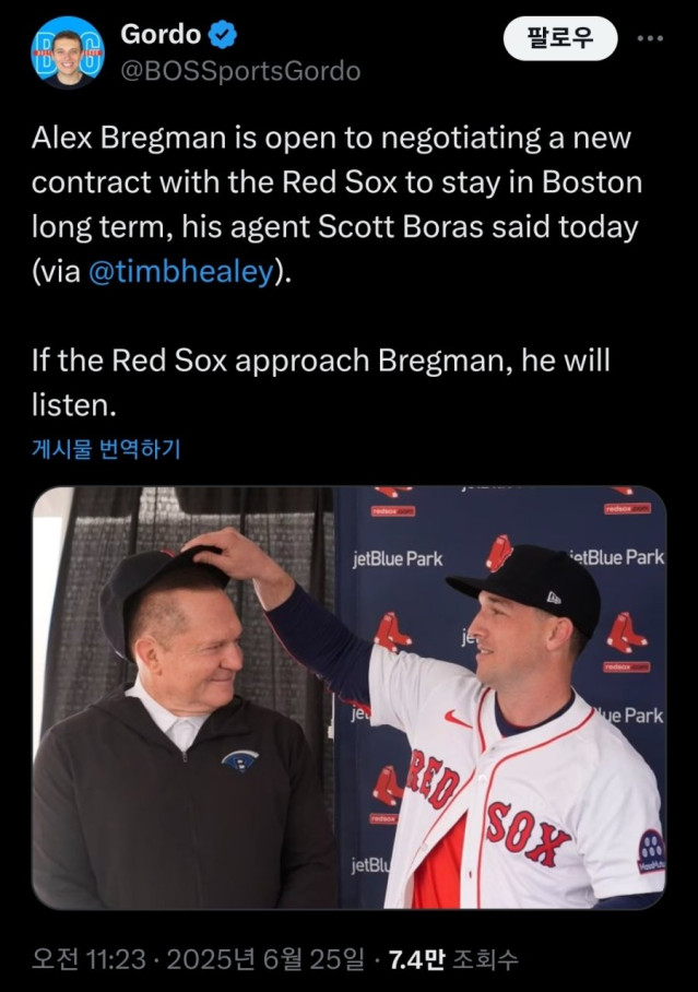 BOS보라스 : 알렉스 브레그먼은 보스턴과 새로운 계약에 대해 열려있다