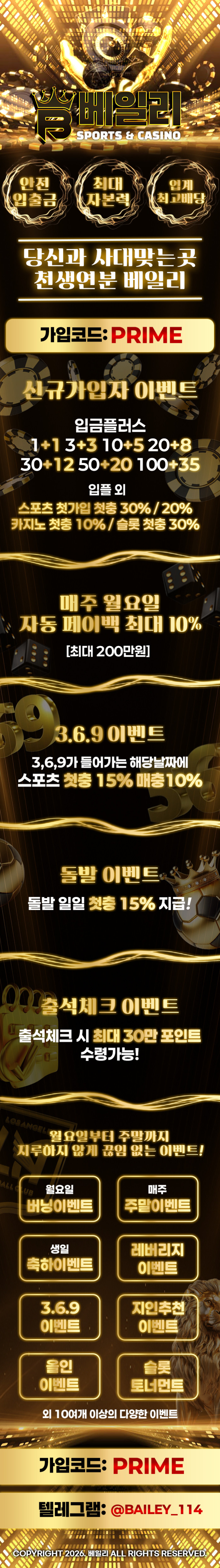 벳프라임 공식 보증 안전놀이터 "베일리" 소개드립니다.