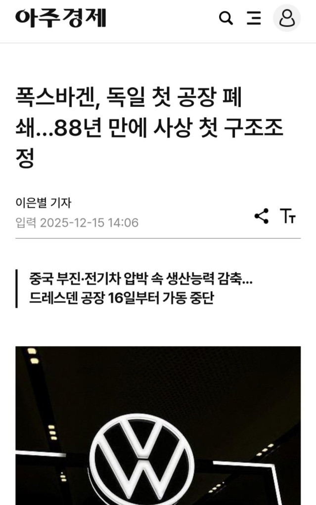 폭스바겐, 88년 역사 첫 구조조정 ㄷㄷ