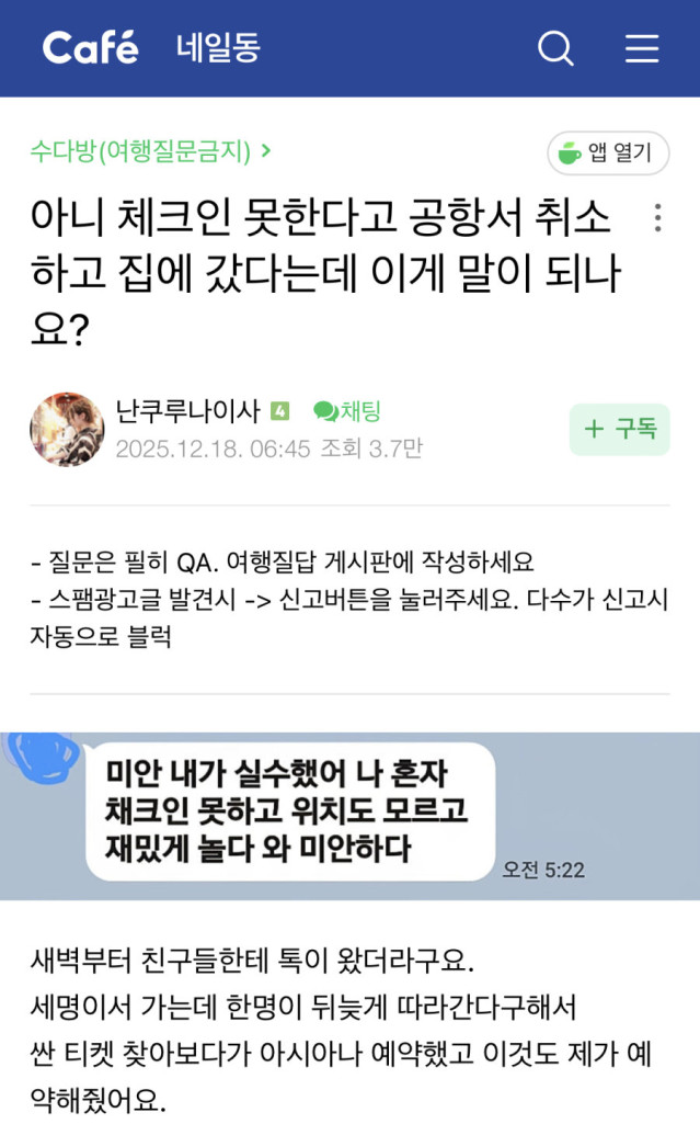 저건 안가고 싶은게 아니라 체크인 못해서 못간거고...