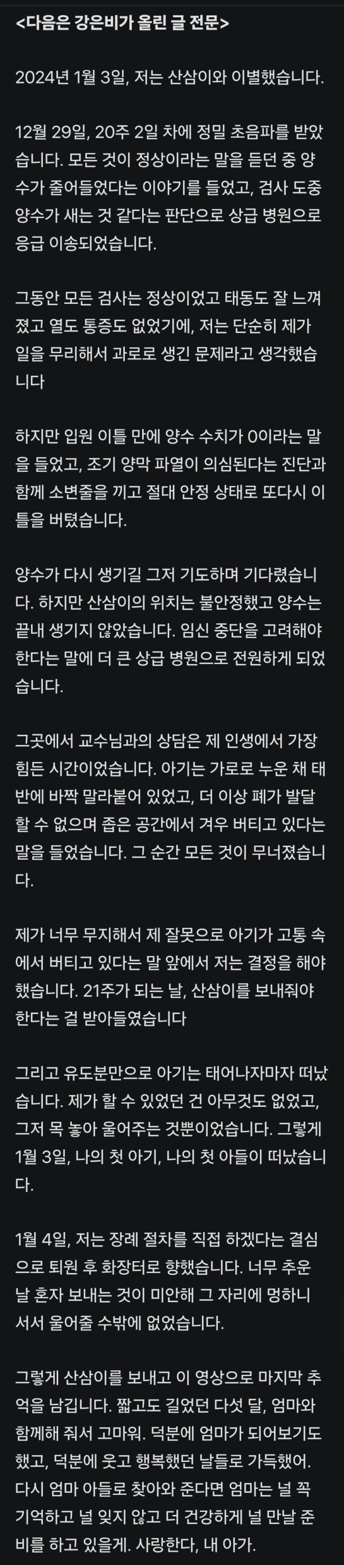 “모든 게 무너졌다”…40세 임신 강은비, 21주 만 유산 눈물 고백...jpg