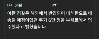 이란 경찰은 6만여정의 총기를 압수했고 모사드네트워크 폭동의 지휘부들을 상당수 체포했다네요.