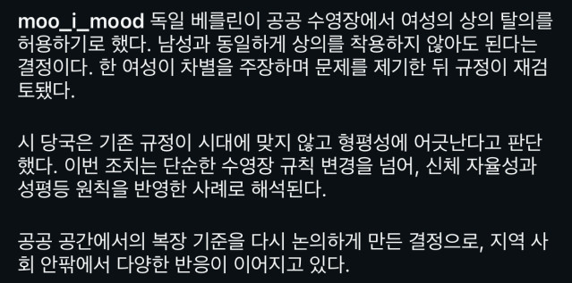 베를린 수영장 여성 탈의 허용 ㄷㄷ 작성자 정보 낭빼시 작성 작성일 2026.02.16 18:17 컨텐츠 정보 9 조회 2 댓글 목록 본문 가즈아!!!! 관련자료 댓글 2 리에하타님의 댓글 리에하타 작성일 18:19 [https://www.bet-prime.com/data/editor/2602/cmt_1889695618_US7qjpWB_5eaa88a3ca09ebc3652fd89a85f774d2546053e5.jpeg] 재홍딕님의 댓글 재홍딕 작성일 18:20 저도 갈래요 저도 갈래요 로그인한 회원만 댓글 등록이 가능합니다. 목록