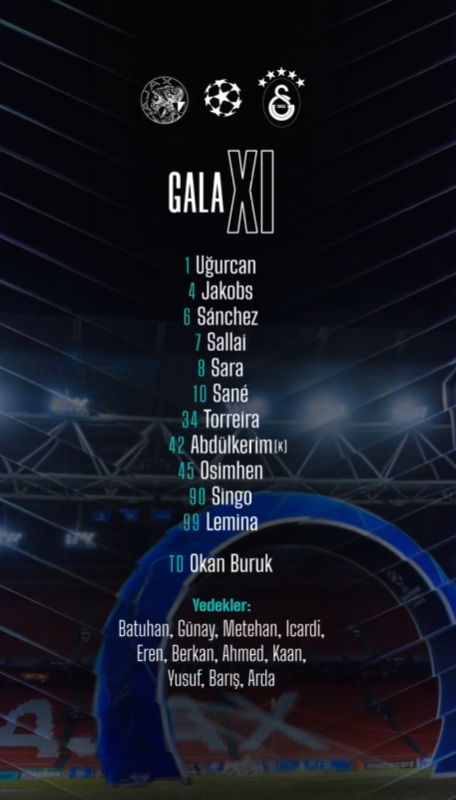 [공홈] 아약스 vs 갈라타사라이 라인업