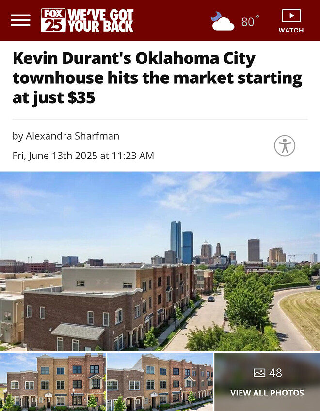 [NBA] 35달러에 오클라호마 집을 내놓은 케빈 듀란트