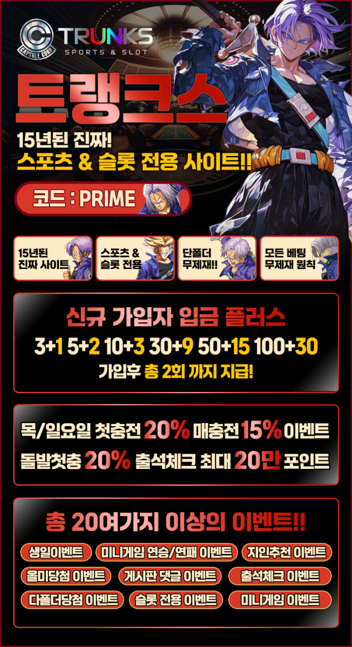 벳프라임 공식 보증 안전놀이터 "트랭크스" 소개드립니다.