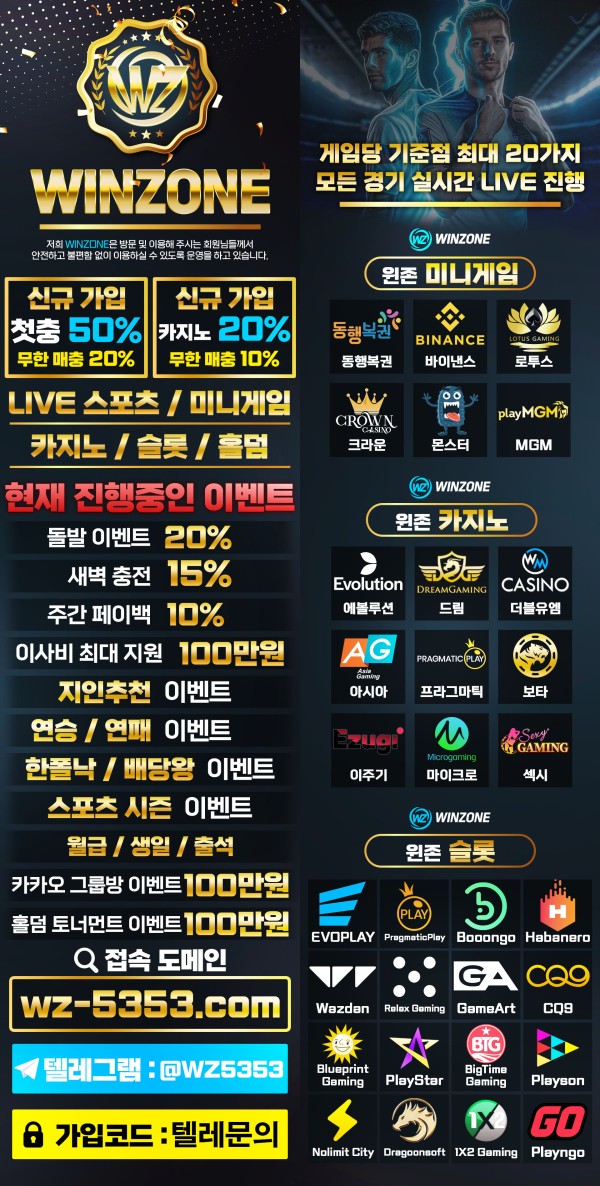 ❤️메이져 " WINZONE"❤️☀️가입첫충 50% ,무한 매충☀️⭕️내용확인⭕️