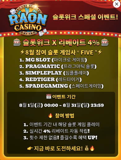 ⭐️8월 슬릇 실시간 리베이트 4프로 지급!!