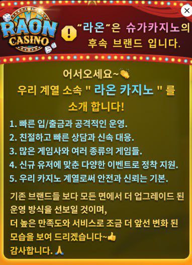 우리계열 명품 라온카지노 매일 페이백15% 주마다페이백,모든게임콤프지급,배팅제재X 작성자 정보 대관령 작성 작성일 2025.07.22 23:13 컨텐츠 정보 152 조회 목록 본문 우리계열 정통 라온카지노매일 캐시백 5% 지급 + 10프로더보장합니다 텔주세요매주 캐시백 3% 지급럭키휠 이벤트모든 게임 콤프 지급카지노 슬롯 스포츠 미니게임베팅제재X스포츠 한도 1억원업계최고 우리계열카지노 라온카지노정통성 안전놀이터 !최고는 확실합니다접속주소 : raon01.com접속안될시 raon02.com가입코드 : 4545텔 : xs2s2x 관련자료 댓글 0 등록된 댓글이 없습니다. 로그인한 회원만 댓글 등록이 가능합니다. 목록