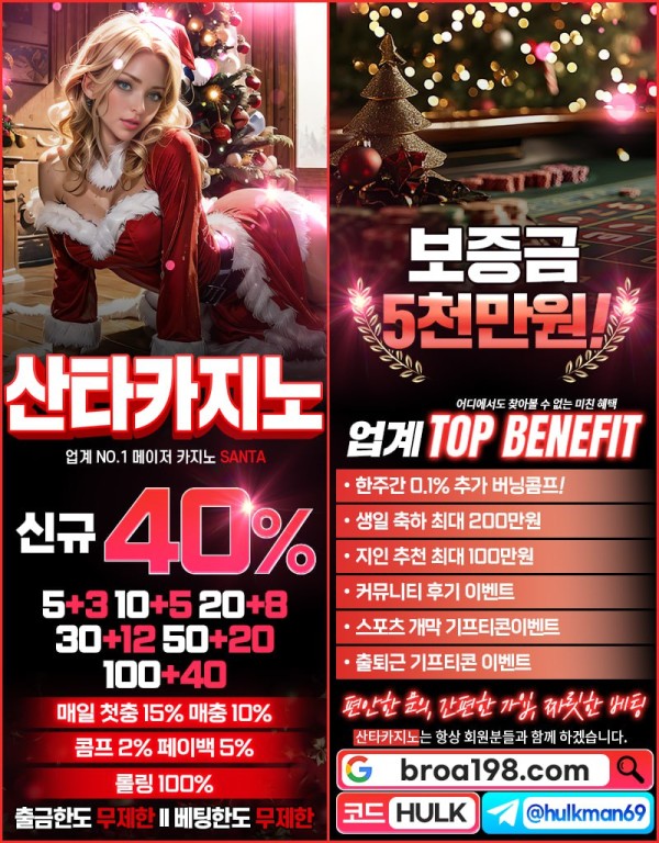 국내 No.1 메이저 카지노 업체 산타 카지노 입니다.