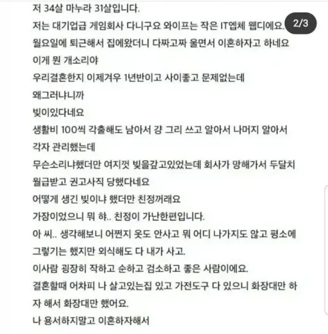 갑자기 이혼하자는 와이프 작성자 정보 강슬기 작성 작성일 2026.01.20 14:50 컨텐츠 정보 417 조회 1 댓글 목록 본문 ????? 관련자료 댓글 1 픽유망주님의 댓글 픽유망주 작성일 2026.01.20 14:51 뻔한 소설 ~~ 뻔한 소설 ~~ 로그인한 회원만 댓글 등록이 가능합니다. 목록
