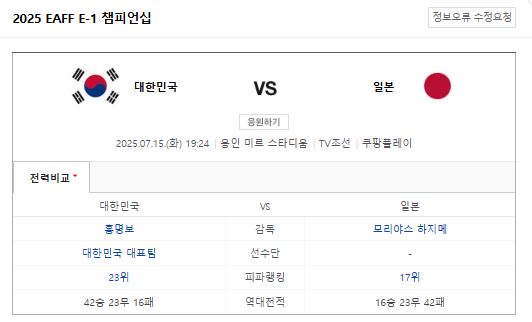 저녁에 한일전 축구있네요
