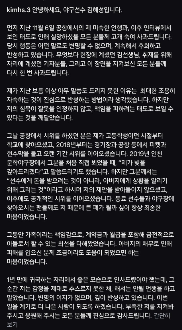 김혜성 사과문
