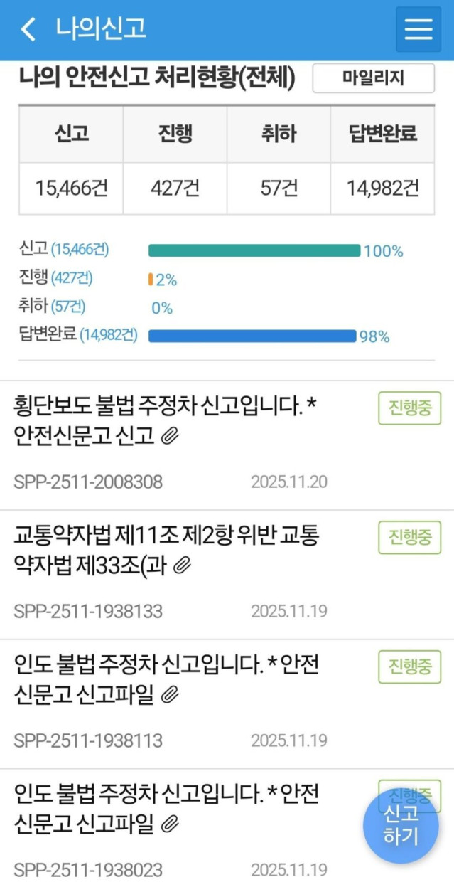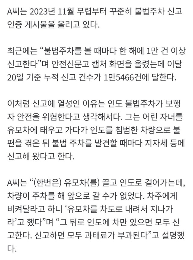 불법주차 15000건 신고한 시민 "유모차 차도로 끌고가라는 말에 신고 결심"