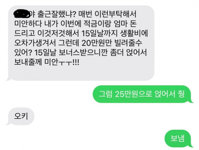 한달에 네다섯번 빌리는게 아니라 정확히 한달에 ^한번씩^만 빌려 그리고 돈은 이자붙여서 따박따박 갚는편이라 나도 오히려 더 빌려주는 타입이고ㅇㅇ 내입1장에선 손해볼건 없거든 그래서 ㅂㅅ같은 구라인거 알면서 걍 빌려줬음