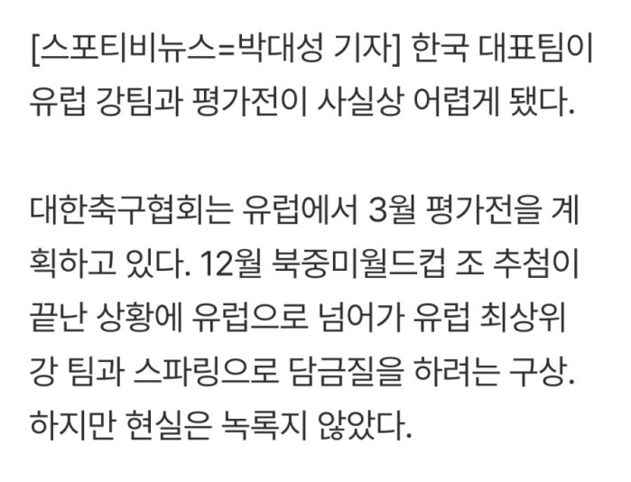 한국 축구, 평가전 유럽 강팀 다 놓쳤다…독일,스위스도 무산.jpg