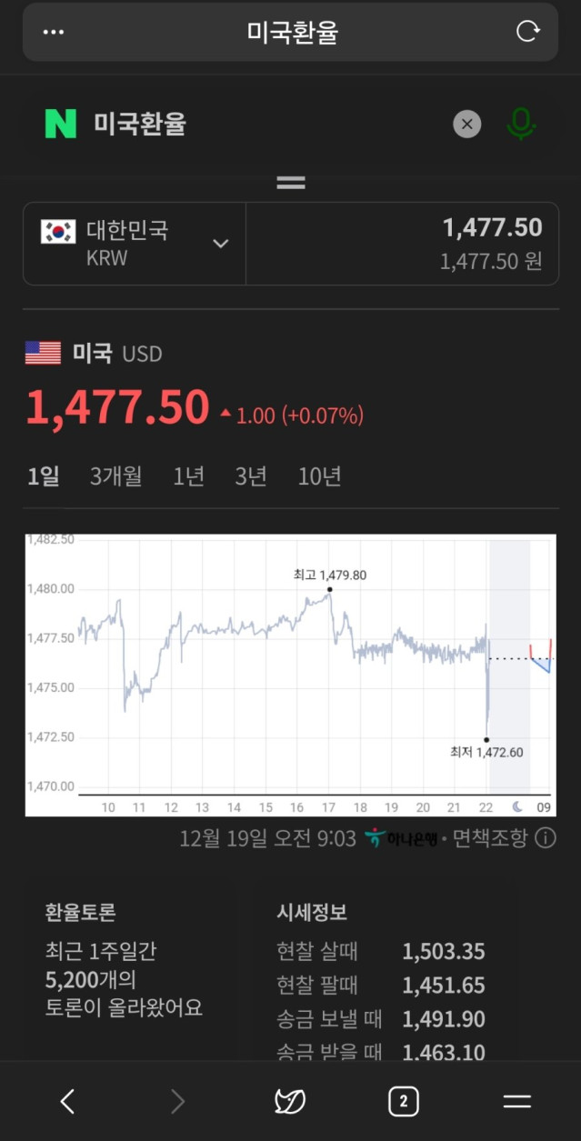 어제 1일 환율 그래프