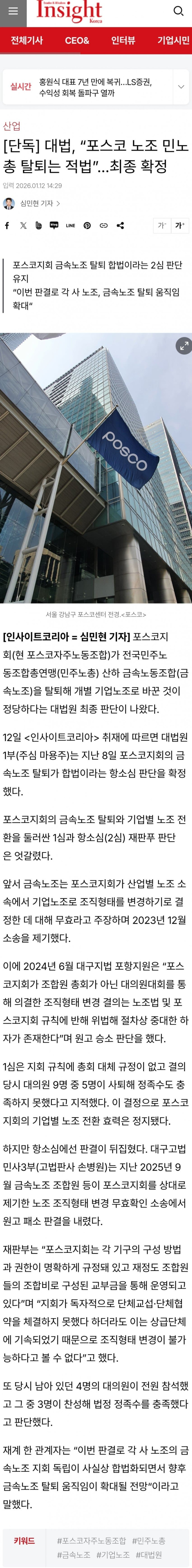 포스코 민노총 탈퇴 ㄷㄷㄷ