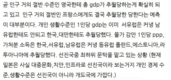 일본 gdp근황 ㄷㄷ 작성자 정보 파워지용 작성 작성일 2026.01.21 22:45 컨텐츠 정보 5 조회 1 댓글 목록 본문 흠... 관련자료 댓글 1 치즈볶음밥님의 댓글 치즈볶음밥 작성일 01.21 22:46 10년 후 대한민국이겠네 늙은이들 밖에 없어서 혁신도 활기도 없는 나라 10년 후 대한민국이겠네 늙은이들 밖에 없어서 혁신도 활기도 없는 나라 로그인한 회원만 댓글 등록이 가능합니다. 목록
