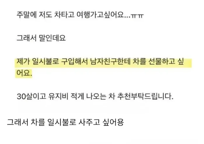 남친이 차가 없어서 너무 불편해요...jpg 작성자 정보 혁쓰혁쓰민 작성 작성일 2026.01.23 10:33 컨텐츠 정보 5 조회 1 댓글 목록 본문 ㄷㄷㄷㄷ 관련자료 댓글 1 손석규님의 댓글 손석규 작성일 10:35 변화구 지린다 진짜 공익을 위해 차를 안타시는거네요 변화구 지린다 진짜 공익을 위해 차를 안타시는거네요 로그인한 회원만 댓글 등록이 가능합니다. 목록