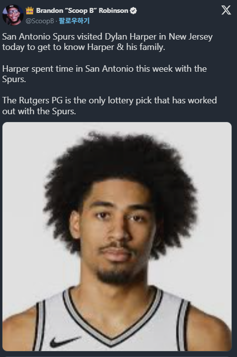 [NBA] 오늘 뉴저지에 있는 딜런 하퍼를 방문해 하퍼와 그의 가족을 만난 스퍼스