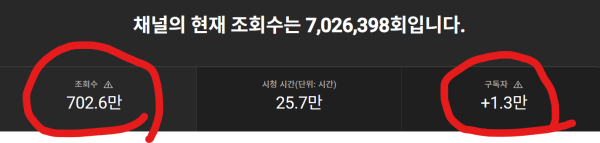 ☀️구독자는 1.25만명 / 영상 최고 조회수 278만회 / 영상 총 조회수 702만회☀️
