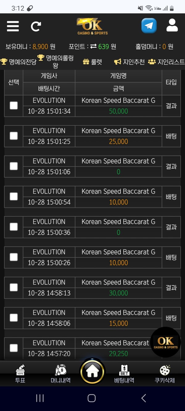 일하다 잠시 짬이나서 ok충전하고 바카라 배팅했는데 소소하지만 수익봤네요ㅅㅅ