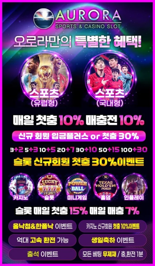 ☀️오로라☀️ 입플 첫30 매10 스포츠단폴 카지노 슬롯 무제재 승전❌