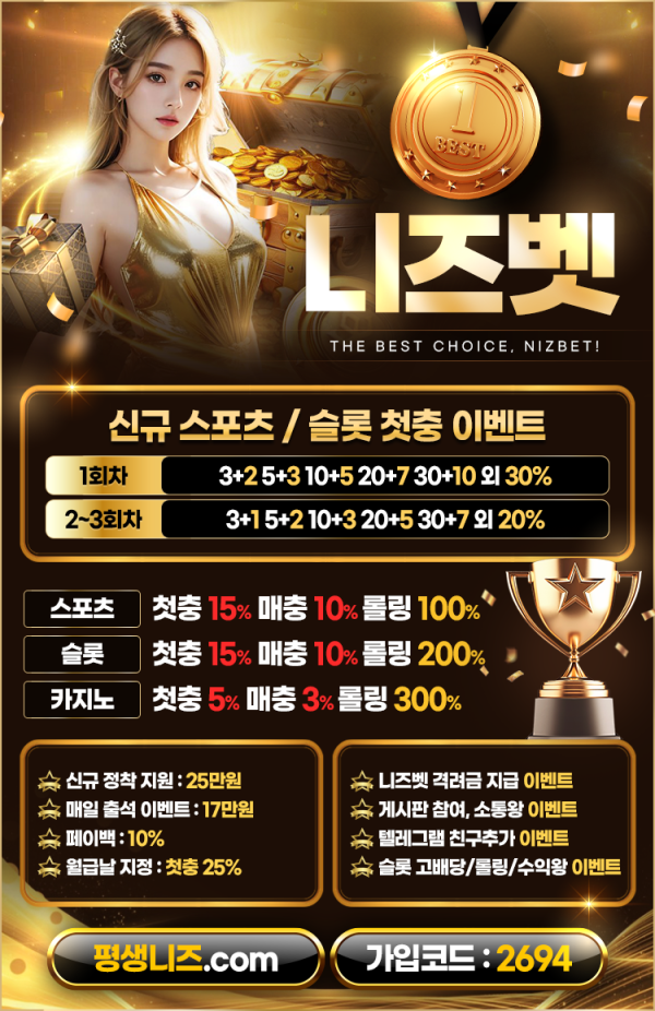 ⭐️니즈벳⭐️스포츠/슬롯 신규입플⭐️첫15%매10%카지노5% ⭐️먹튀검증완료 니즈벳 추천 합니다.